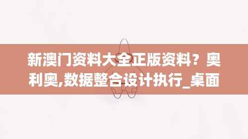 转载请注明来自新时代明师,本文标题:《新澳门资料大全正版资料?奥利奥,数据整合设计执行_桌面款13.613》